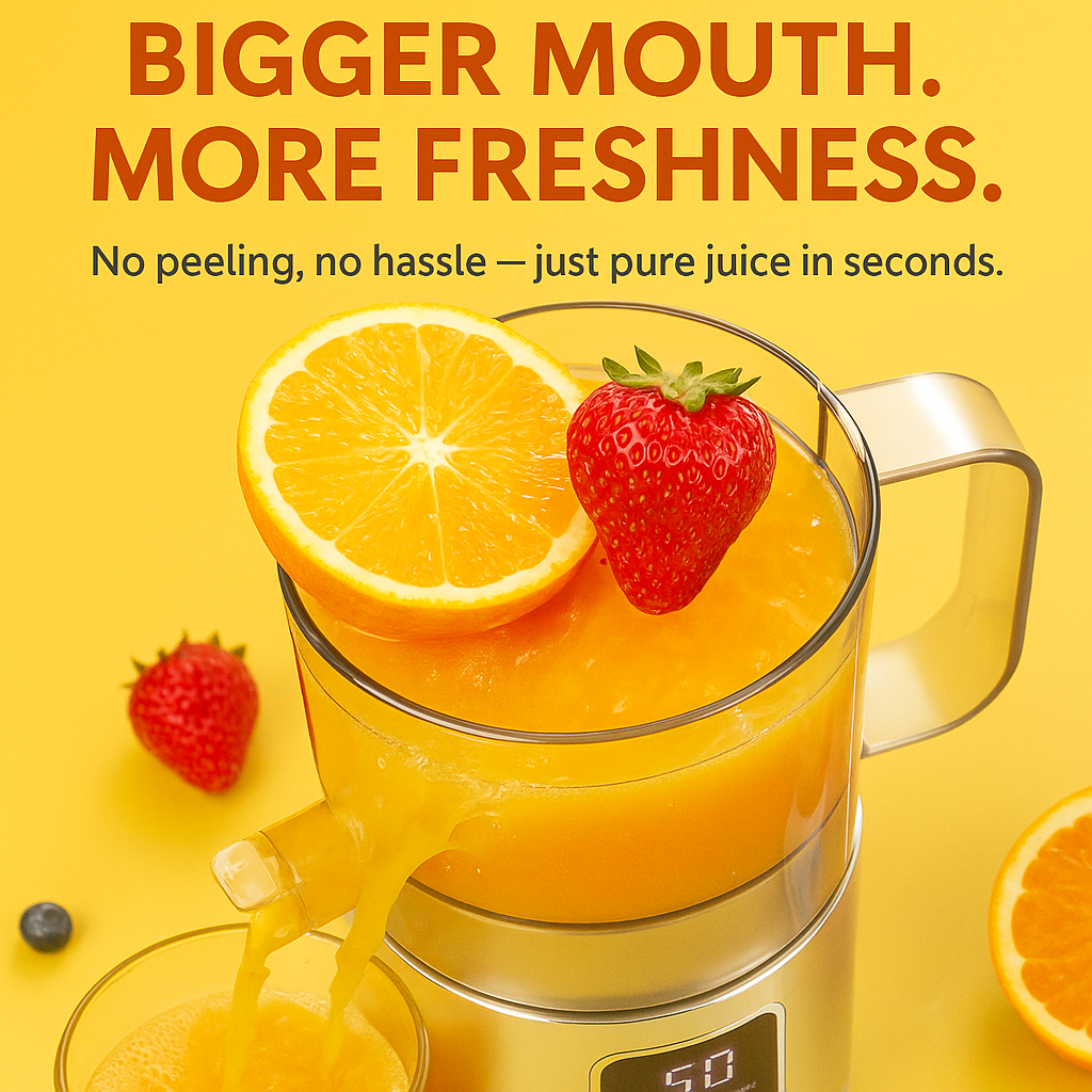 Drop in whole fruits and watch pure juice flow instantly. No chopping, no fuss — just effortless freshness made smarter.